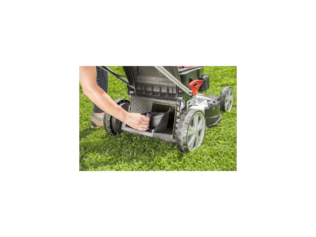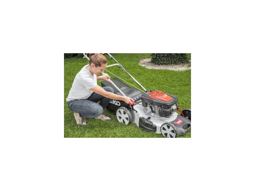 Vlastnosti XXL: Takto sa prezentuje kosačka Easy za atraktívnu cenu. Vďaka tomu je kosenie trávnika zábavné! Benzínová kosačka Easy 5.10 SP-S Kosačka Easy 5.10 SP-S zaujme vynikajúcim pomerom ceny a výkonu. Benzínová kosačka Easy 5.10 SP-S so spoľahlivou technológiou a rozsiahlymi funkciami vám uľahčí prácu na záhrade. Technické detaily benzínovej kosačky Easy 5.10 SP-S So šírkou záberu 51 cm zaisťuje benzínová kosačka ľahké a pohodlné kosenie. Výšku kosenia je možné nastaviť centrálne a pomocou rukoväte od 30 mm do 75 mm v 7 úrovniach, aby ste prispôsobili kosenie vašim osobným požiadavkám. Ľahko štartovateľný 2,3 kW motor je vhodný pre trávniky do 1800 metrov štvorcových. Komfort pri práci ešte zvyšujú ergonomicky tvarované riadidlá a úsporný pohon zadných kolies. Vďaka aerodynamickému krytu z oceľového plechu sa dosahujú optimálne výsledky zberu. To znamená, že zberný kôš s objemom 60 litrov nemusíte tak často vyprázdňovať. Dá sa tiež uložiť, aby sa ušetrilo miesto. Kompletnú výbavu dopĺňa funkcia 4INONE s kosením, zberom, mulčovaním a bočným vyhadzovaním. Kúpte si benzínovú kosačku Easy 5.10 SP-S a jej alternatívy Benzínovú kosačku Easy 5.10 SP-S si jednoducho zakúpte priamo v našom internetovom obchode, alebo u niektorého z našich špecializovaných predajcov. Benzínová kosačka Easy 5.10 SP-S poskytuje efektívnu podporu pre vaše záhradníctvo za atraktívnu cenu.Dodatočné parametre