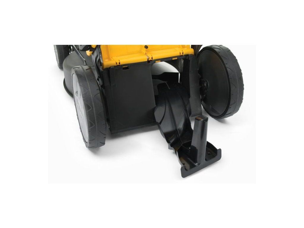 Kosačka disponuje centrálnym nastavením výšky kosenia v 6 polohách od 22 do 80 mm, čo umožňuje prispôsobiť úroveň kosenia rôznym typom trávnikov. Veľké zadné kolesá s priemerom 280 mm výrazne uľahčujú manévrovanie na nerovnom teréne a zvyšujú stabilitu.