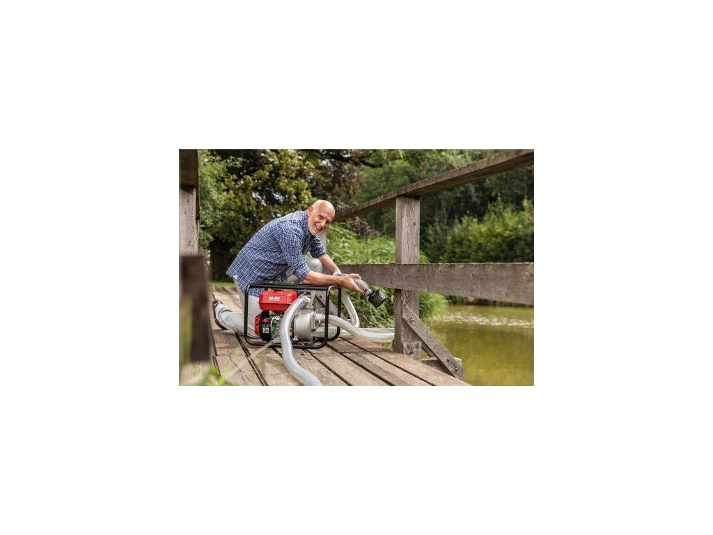 Či už chcete zavlažovať Vašu záhradku v záhradkárskej osade alebo vyčerpať vodu zo zásobníkov, jazierok, bazénov alebo z pivnice pri záplavách – toto čerpadlo na vodu je pripravené na použitie aj na miestach bez elektrickej zásuvky. Benzínové motorové čerpadlo pre Vašu záhradu 4-taktný motor AL-KO s hore uloženými ventilmi (technológia OHV) sa dá ľahko naštartovať a má vynikajúcu účinnosť. To sa prejavuje veľkým výkonom pri súčasne nízkej spotrebe benzínu. Benzínové čerpadlo AL-KO BMP 30000 spĺňa najvyššie požiadavky a aj pri trvalej prevádzke poskytuje vždy maximálny výkon . Technické detaily benzínového motorového čerpadla AL-KO BMP 30000 Benzínové motorové čerpadlo má mimoriadne veľký výkon 4,1 kW a prepravuje vodu z hĺbky až 6 m do výšky až 27 m. Vďaka mimoriadne dlhej životnosti a efektívnej technológii čerpadiel AL-KO i vďaka 3,6 l benzínovej nádrži sa toto čerpadlo ideálne hodí na mnohé úlohy spojené s odčerpávaním vody. Kvôli jednoduchej údržbe je plniaci otvor na olej dobre dostupný na telese čerpadla. Prípojka na nasávacej a na výtlačnej strane má priemer 2 palce (59,6 mm). Aby bolo možné naplniť čerpadlo v záujme bezproblémového naštartovania rýchlo a pohodlne vodou, je hrdlo na nalievanie, ktoré sa dá jednoducho plniť, umiestnené na vrchnej strane čerpadla. Maximálne dopravované množstvo dosahuje enormných 30 000 litrov za hodinu. Vďaka nízkej vlastnej hmotnosti iba 26 kg a robustnému rámu sa dá čerpadlo dobre prenášať a vzhľadom na to používať mobilne a flexibilne. Kúpte si benzínové motorové čerpadlo AL-KO BMP 30000 Kúpte si čerpadlo na vodu AL-KO BMP 30000 jednoducho v našom e-shope alebo nájdite predajcu vo Vašej blízkosti. Záhradné čerpadlo AL-KO BMP 30000 je Váš efektívny pomocník v záhrade i v dome, nezávislý od elektriny. Hľadáte ešte alternatívy? Tak sa pozrite na AL-KO BMP 14001 s nižším výkonom.Dodatočné parametre