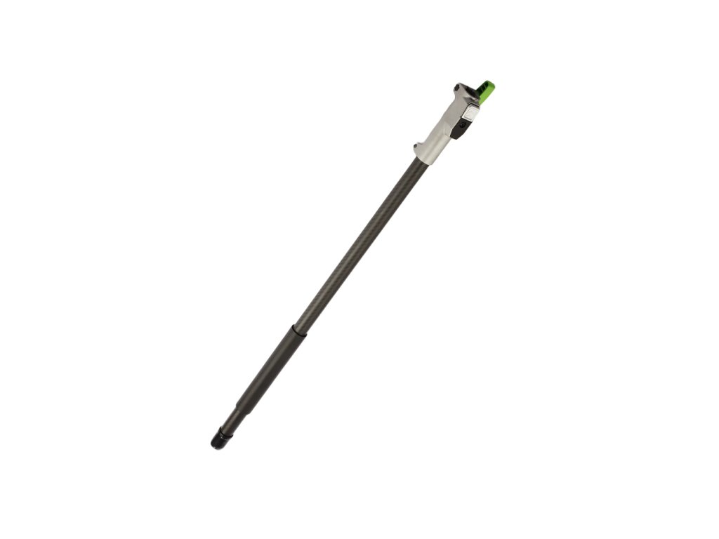 Tyč je vyrobená z ľahkého a pevného karbónového materiálu, ktorý zabezpečuje vysokú tuhosť pri nízkej hmotnosti. To je kľúčové najmä pri práci s nadstavcami ako teleskopická vyvetvovacia píla alebo plotostrih, kde by nadmerná hmotnosť výrazne znižovala komfort a presnosť práce.