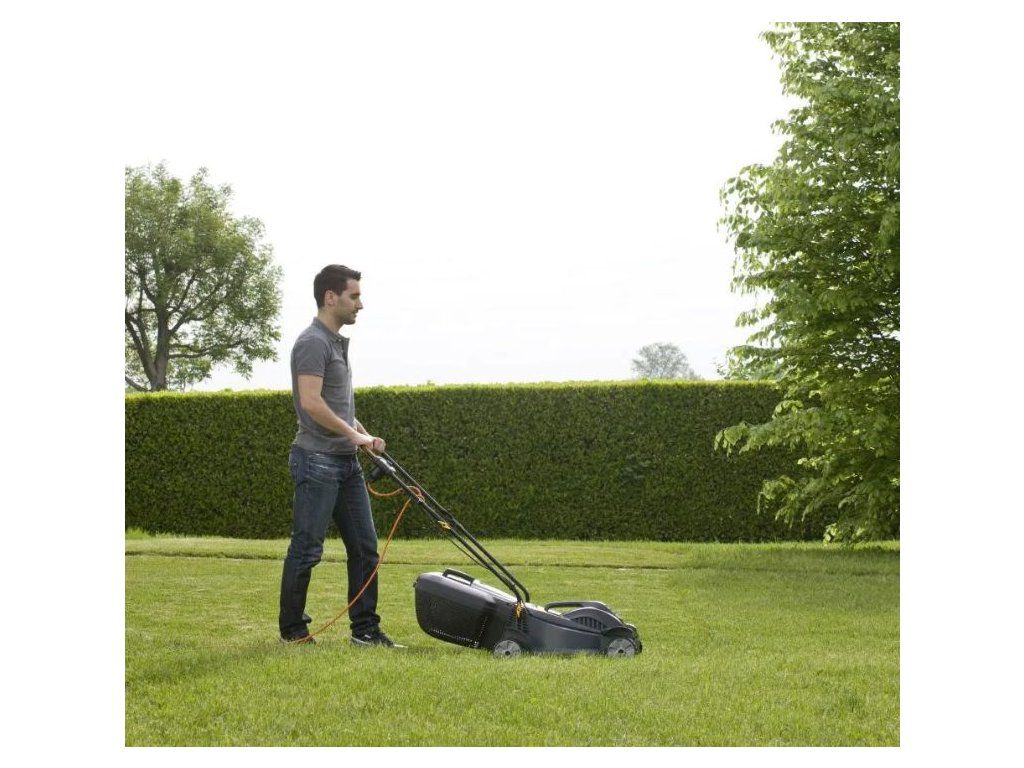 S pracovným záberom 35 cm a tromi nastaviteľnými výškami kosenia (od 26 do 65 mm) zvládnete úpravu trávnika podľa vašich predstáv. Hybridný zberný kôš s objemom 30 litrov a indikátorom naplnenia zjednodušuje zber pokosenej trávy.