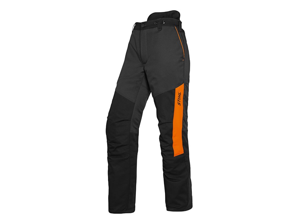 Priedušný materiál s vysokým komfortom nosenia, farba Antracit, čierna a reflexná oranžová. Certifikovaná ochrana proti porezaniu podľa EN 381, elastické vložky, vetracie zipsy, zosilnenie kolien, reflexné prvky pre dobrú viditeľnosť, praktické vrecká, dve predné neprekryté vrecká na zips. Materiál vonkajší: 65% Polyester, 35% Bavlna / 70% Polyester, 30% Bavlna (oranž) Robustnosť vrchného materálu: veľmi dobrá Hmotnosť bundy/nohavíc: 0,6 / 1,3 kg (pre veľkosť 52) Vodeodolnosť: NIE Ochranný faktor voči UV žiareniu: 60 Ochrana pred chladom a izolačné vlastnosti: dobré Priedušnosť: veľmi dobrá Špeciálny vetrací systém: Vetracie otvory Impregnácia voči znečisteniu: ÁNO Elastický vrchný materiál: ÁNO, čiastočne Úroveň ochrany: Trieda 1 pre nohavice Pásmo s ochranou proti porezaniu: Design A, EN 381Dodatočné parametre