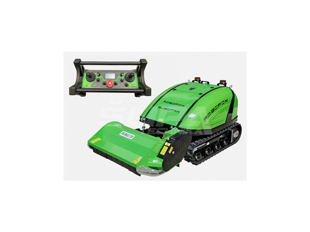 Peruzzo ROBOFOX ELECTRA je samohybná diaľkovo ovládaná kosačka s plne elektrickým pohonom na pohyb a pohon žacej lišty.