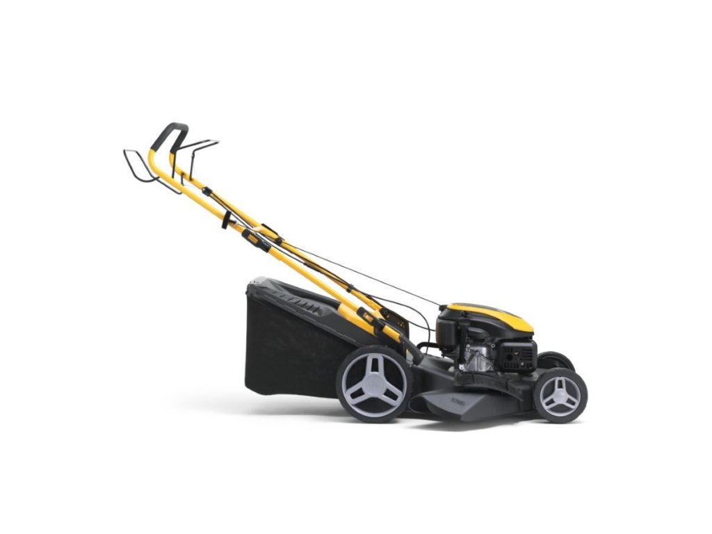 Ergonomická rukoväť s mäkkým povrchom a vačkovými zámkami zvyšuje komfort obsluhy, zatiaľ čo indikátor plnosti koša uľahčuje prácu počas kosenia. Celková hmotnosť 33 kg zaručuje stabilitu a zároveň ľahkú ovládateľnosť.