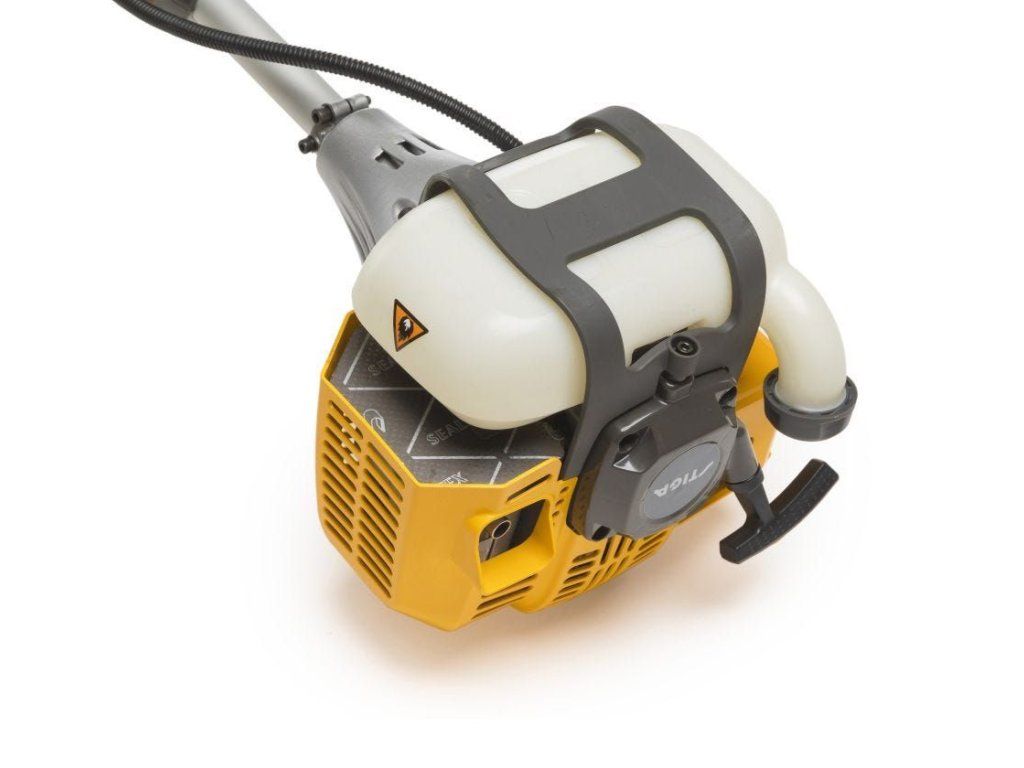 Krovinorez je vybavený vyžínacou hlavou s dvomi strunami o priemere 2,4 mm a navyše disponuje 3-zubým rezným kotúčom, čo umožňuje efektívne kosenie rôznych typov porastov. Súčasťou balenia je praktický dvojramenný popruh, ktorý uľahčuje manipáciu a znižuje únavu počas práce.