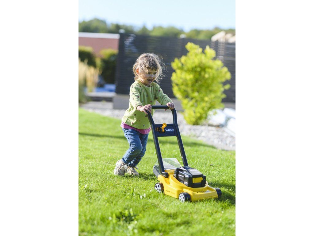 Funkčná plastová kosačka pre deti od 18 mesiacov s mechanickým zberom trávy. V zbernom koši sa popri jazde premiešavajú