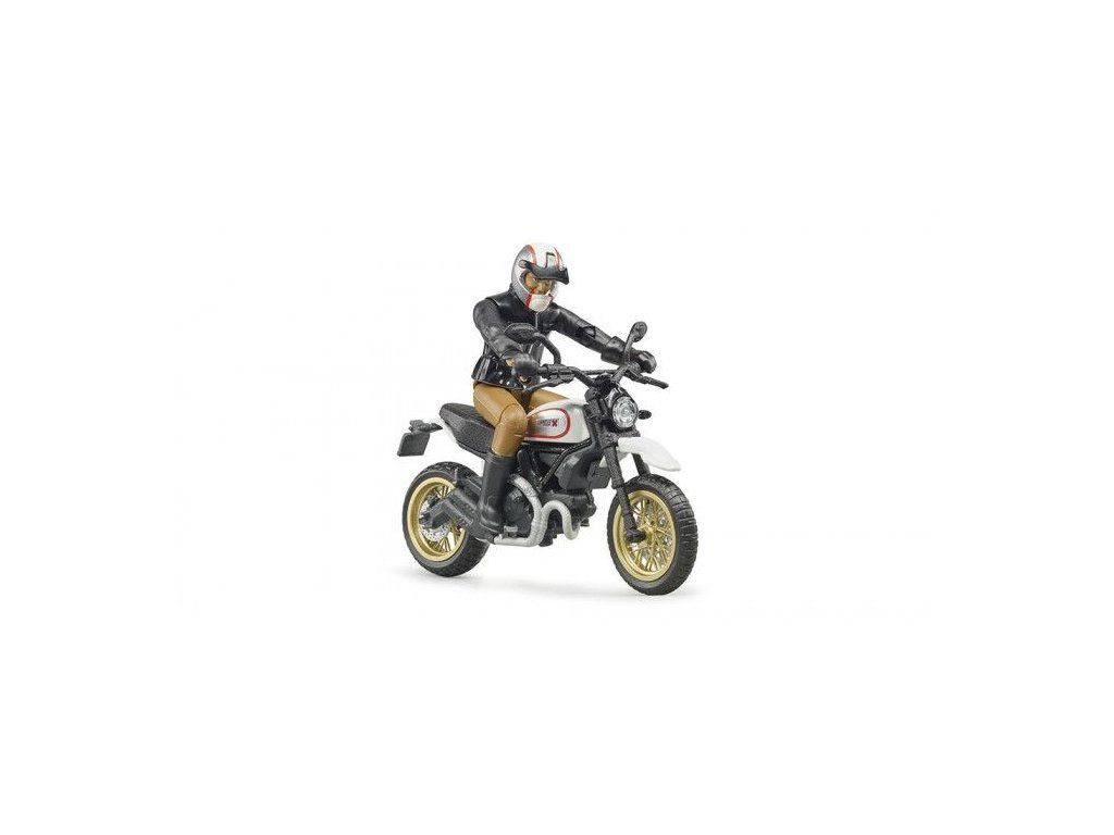 Ducati Scrambler Desert Sled je model rady enduro. Motorka má riaditeľnú a odpruženú prednú vidlicu, bočný stojan a terénne pneumatiky. Figúrka motorkára má štýlové oblečenie aj s prilbou a rukavicami. Maketa