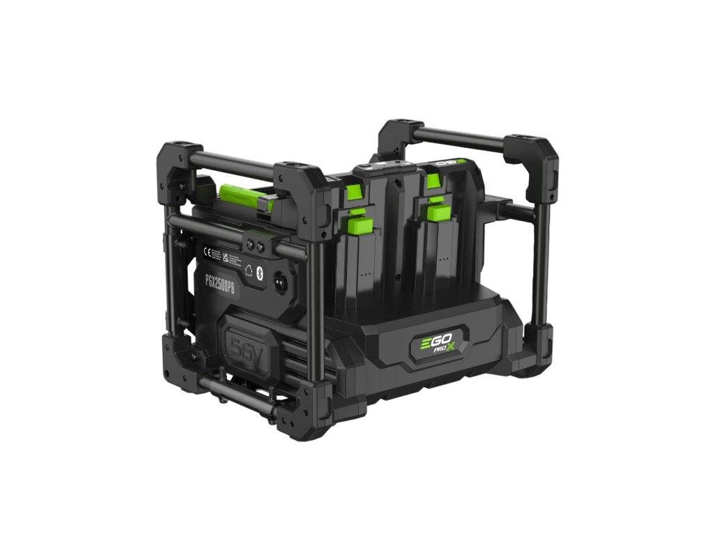Model PGX2500PB (PGX Power Bank) mení pravidlá hry pre profesionálov pracujúcich na rozsiahlych pozemkoch bez prístupu k elektrickej sieti. Táto 2500 W prenosná nabíjacia stanica slúži ako mobilná "powerbanka", ktorá umožňuje nabíjať prenosné batérie EGO priamo na mieste výkonu práce, čím eliminuje potrebu vracať sa do dielne alebo nosiť so sebou nadmerné množstvo náhradných batérií.