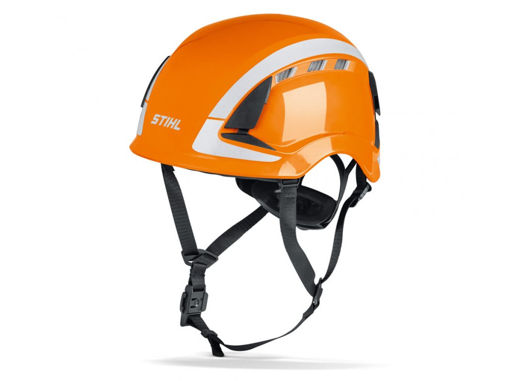 Univerzálna prilba pre prácu vo výškach aj pre ťažbu dreva. Vysoká úroveň pohodlia, dobre vyvážená, veľké vetracie otvory. Reflexné samolepky po celom obvode. V ponuke ako samostatná prilba alebo sada s ochranným štítom a ochranou sluchu.Dodatočné parametre
