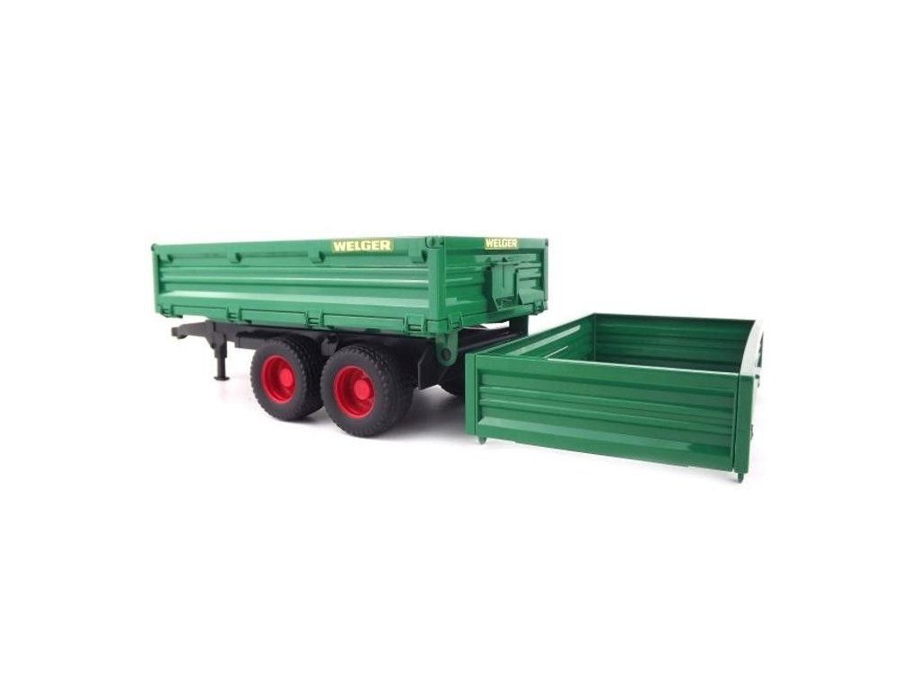Vlastnosti: odnímateľná horná nadstavba, bočnice otvárateľné do všetkých strán a sklápací príves. Príves je kompatibilný so všetkými traktormi Bruder, vyrobený v mierke 1:16. Vhodný pre deti od 3 rokov.