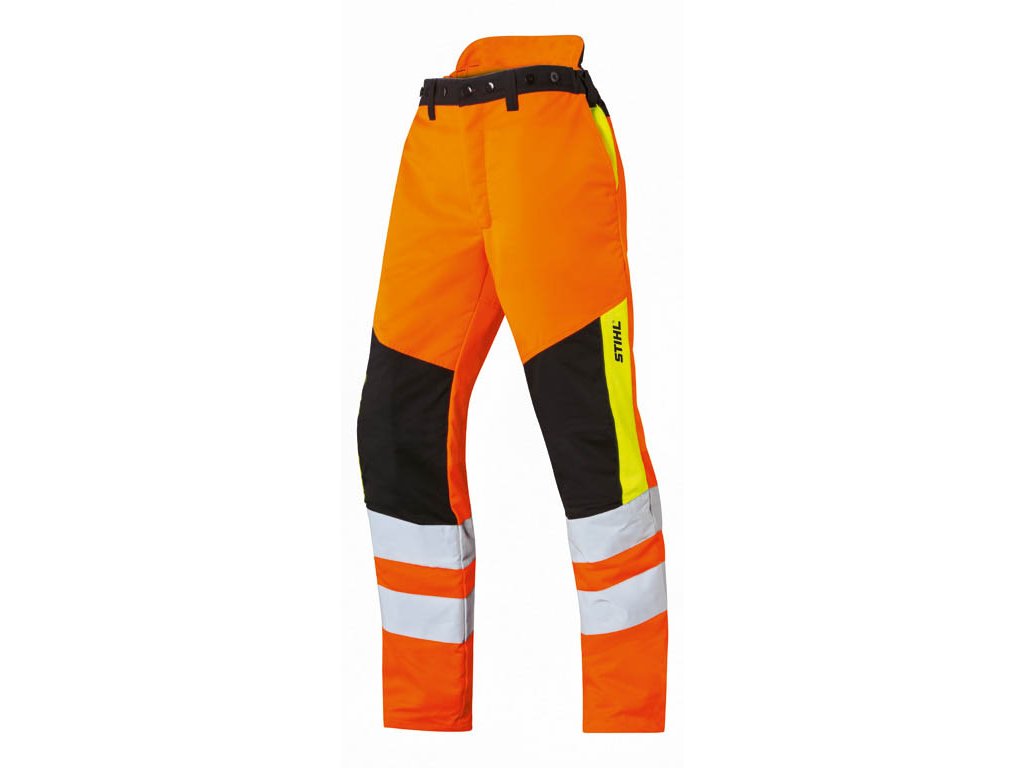 Pevné a pohodlné ochranné nohavice pre prácu s motorovou pílou z mixu funkčných materiálov. Skvelá voľnosť pohybu. Výrazná oranžová farba pre zvýšenú bezpečnosť (EN ISO 20471). Použitý materiál: 100% Polyester/ 65% polyester a 35% bavlna. Spevnený materiál na kolenách a spodnej časti nohy. Dve bočné vrecká, jedna zadná kapsička, jedna meračná priehradka, ochrana obličiek, a zvýšený chrbát na ochranu proti podchladeniu. EN 381, ochranná úroveň 1 (= 20 m / s).Dodatočné parametre