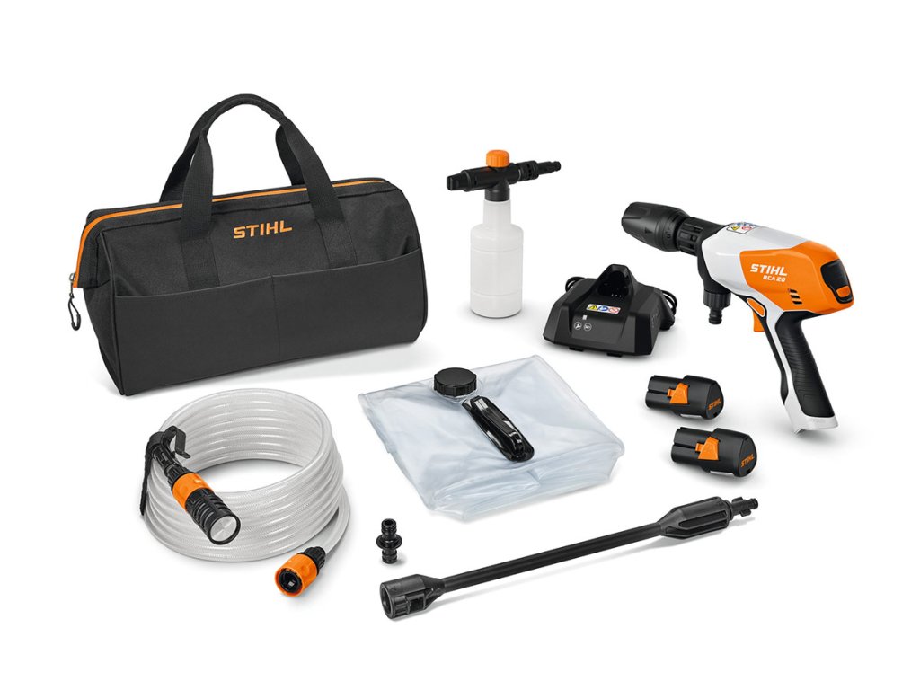STIHL RCA 20 je ideálny, keď je rýchlosť rozhodujúca: Zapojte hadicu a môžete pracovať! Je ideálny na drobné upratovacie práce okolo domu a záhrady, najmä na čistenie predmetov, ako je záhradný nábytok, bicykle, malé vozidlá alebo náradie. RCA 20 tiež umožňuje vykonávať čistiace práce všade tam, kde nie je k dispozícii elektrická zásuvka. Použitý akumulátor AS 2 je kompatibilný aj s ručnou motorovou pílou GTA 26, nožnicami HSA 26, ASA 20, HSA 30, HSA 40, vyžínačom FSA 30 a vysávačom SEA 20, fúkačom BGA 30 a kompresorom KOA 20. Pracovný čas 7,5 - 15 minútDodatočné parametre