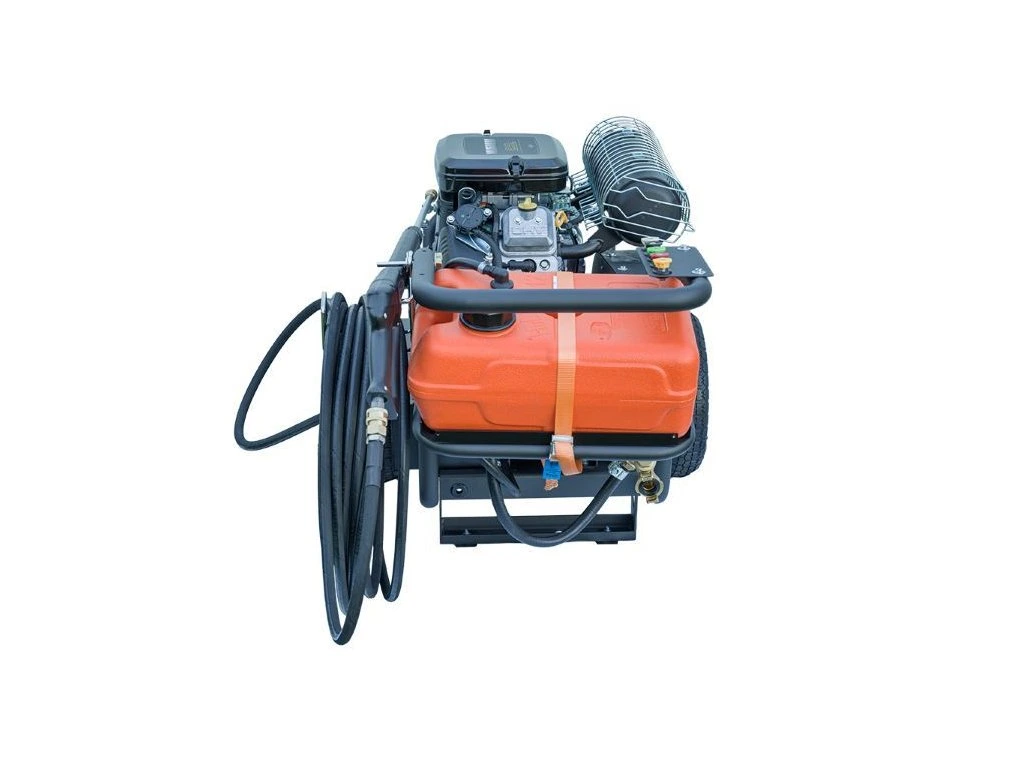 Praktické prvky ako integrovaná nádrž na čistiaci prostriedok, transportné kolieska a 15-metrová hadica zvyšujú komfort a mobilitu stroja. Celková hmotnosť 120 kg pritom garantuje stabilitu počas práce.