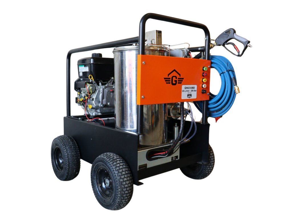 Vysokotlakový čistič s ohrevom GH4200BD spája extrémny výkon s efektivitou horúcej vody. Tento profesionálny čistič je navrhnutý na náročné úlohy, kde studená voda nestačí. Vďaka silnému motoru Briggs&Stratton Vanguard 14HP a dieselovému ohrevu vody dokáže odstrániť aj tú najodolnejšiu špinu, mastnotu a olejové zvyšky. Je ideálny pre priemysel, stavebníctvo, poľnohospodárstvo či údržbu vozidiel a strojov.