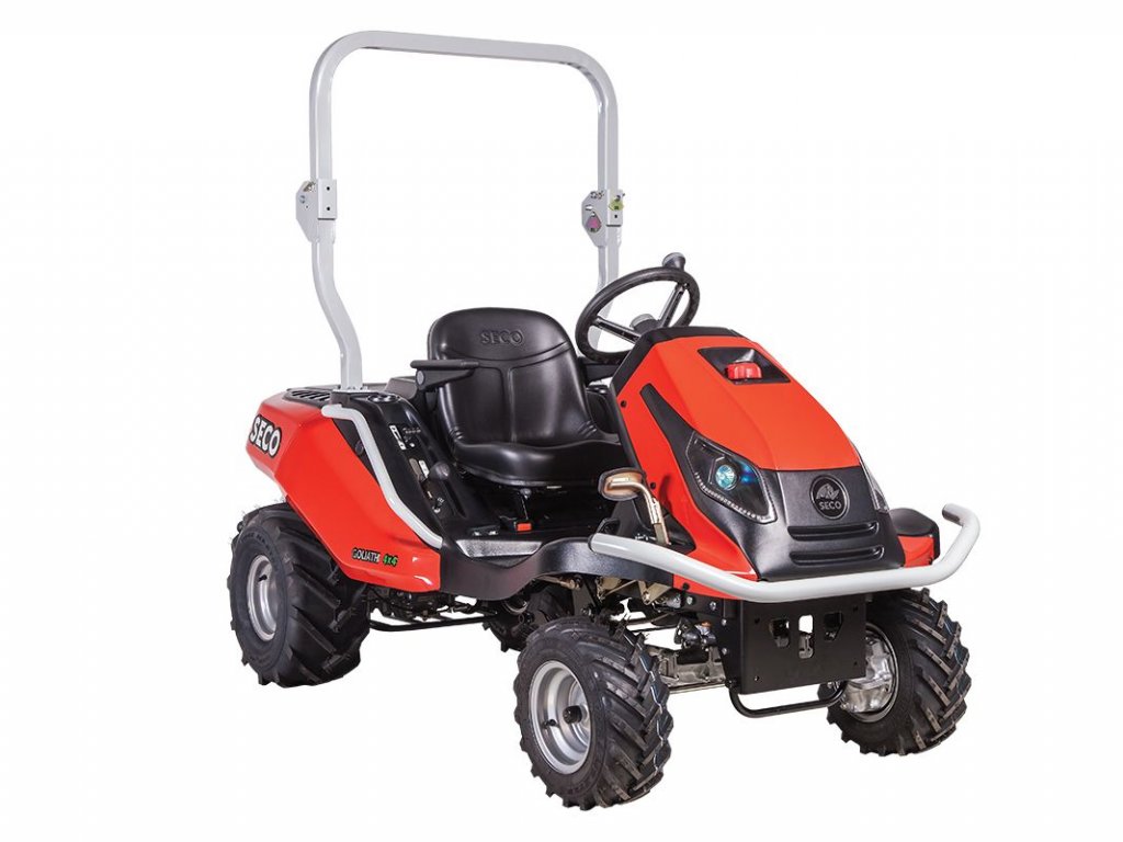 Vďaka špeciálnemu 4-taktovému motoru Kawasaki s výkonom 26 HP a pohonu 4x4 s mechanickou uzáverkou diferenciálu dokáže Goliath prekonať terény, ktoré sú pre iné stroje nedostupné. Hydrostatická prevodovka a elektromagnetická spojka kosenia zaručujú plynulú a presnú prácu.