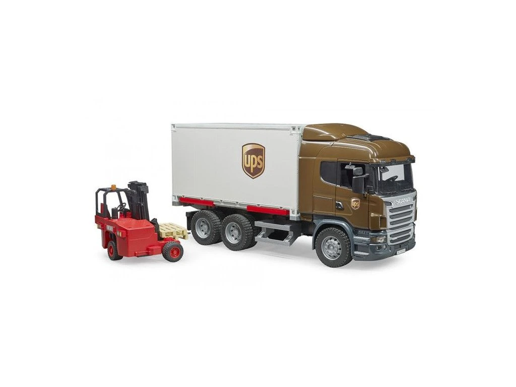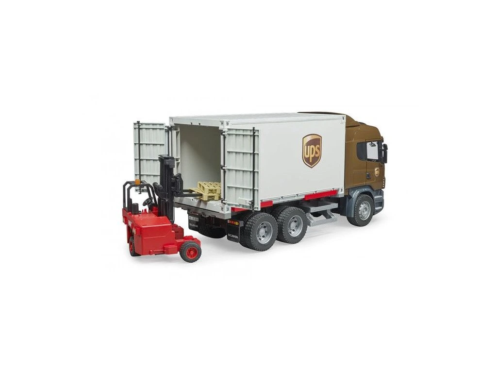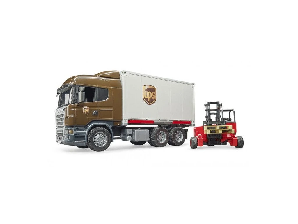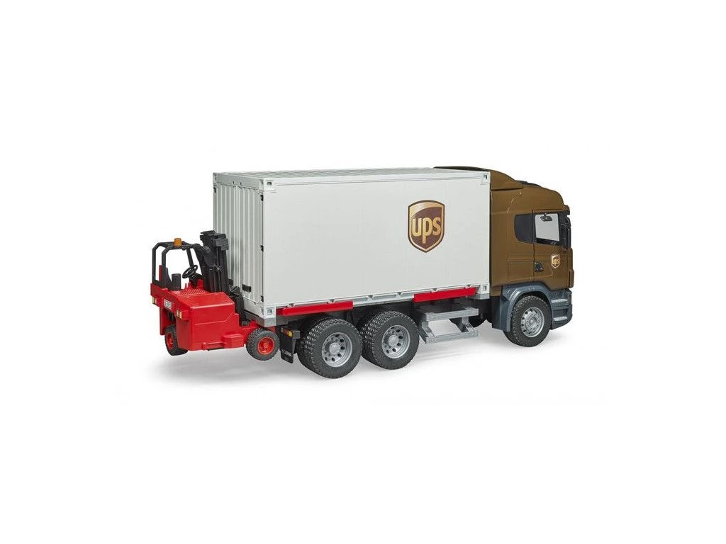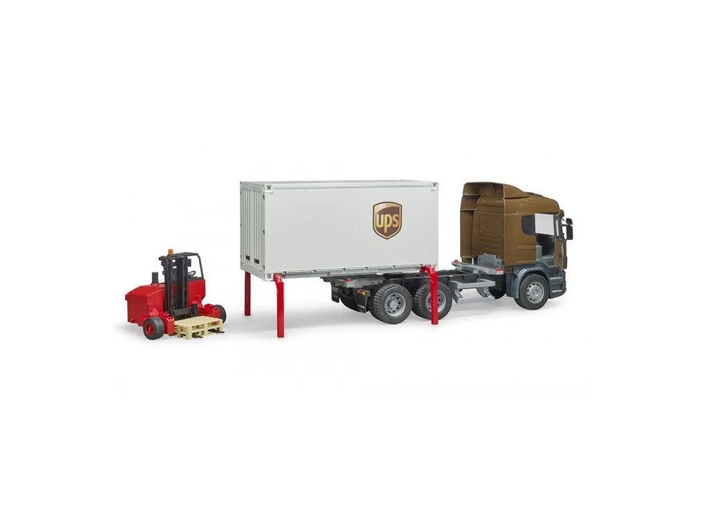 Bruder model tejto dynamicky pôsobiacej Scanie rady R má tri nápravy, otváracie dvere kabíny, sklápacie spätné zrkadlá a odnímateľný prepravný kontajner. Zadné dvere kontajneru sú otváracie. Kontajner je možné jednoducho vysunúť