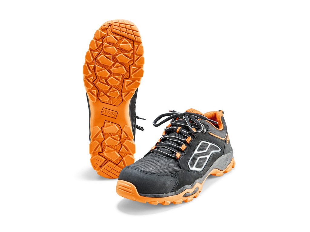 Vrchná úprava z vysoko kvalitného materiálu - vodoodpudivá hovädzia koža, priedušná a rýchloschnúca textilná podšívka s polstrovanou hranou. Reflexné pásy po oboch stranách. Oleju a palivu odolné gumené/EVA podošvy certifikované EN ISO 20345 S2.Dodatočné parametre