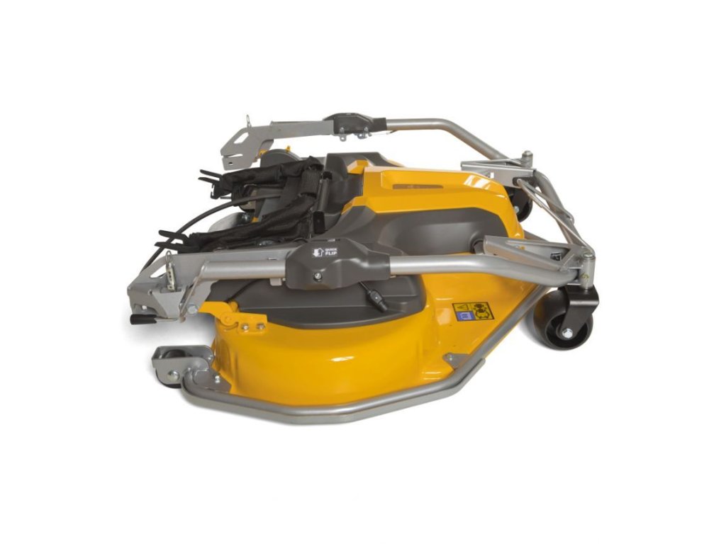 Kľúčovou výhodou je systém Quick Flip, ktorý umožňuje rýchle zdvihnutie žacieho ústrojenstva pre jednoduchú údržbu bez nutnosti demontáže predného remeňa. Štandardom sú dva antiscalpovacie kolieska vpredu, zaručujúce stabilitu a presnosť počas kosenia.